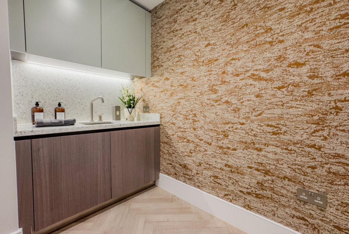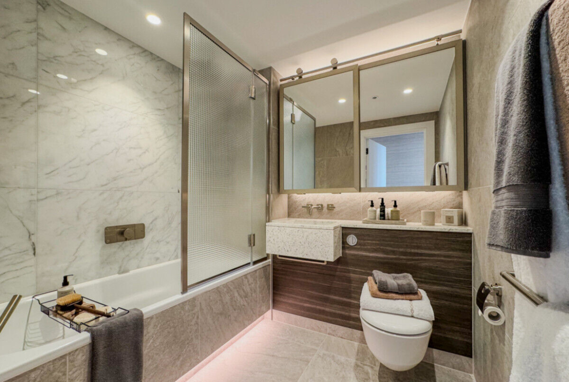Residents benefit from exclusive access to the 1882 Club Bar and Lounge on the 24th floor, offering stunning panoramic views of London. Additional world-class amenities include a private cinema, karaoke and music rooms, a library, games lounge, and more. The development also features a 24-hour concierge, swimming pool, vitality pool, sauna, steam room, 8th-floor roof terrace, and complimentary membership to The Gym Group.