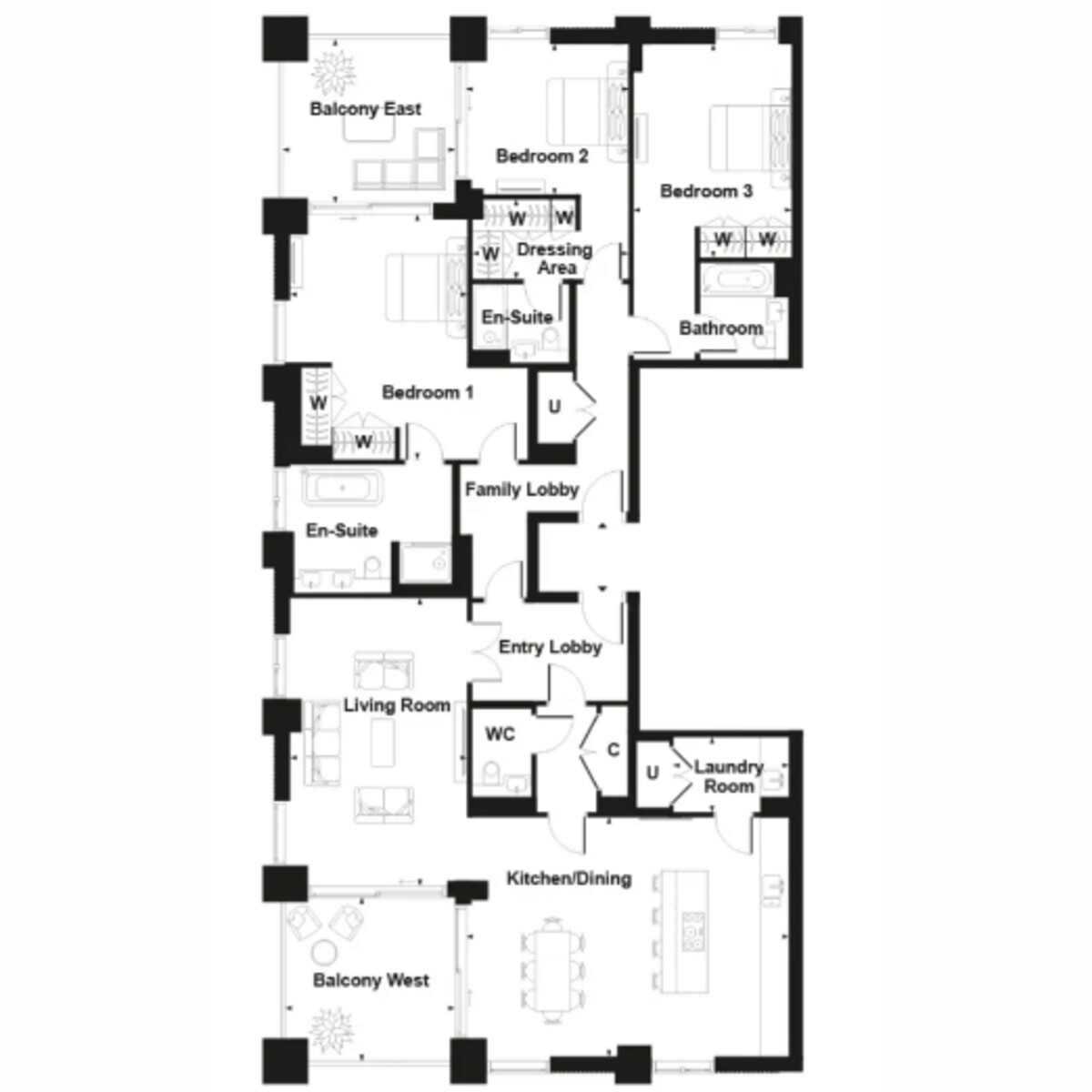 This luxurious one of two last remaining Three-bedroom apartment, situated on the 18th floor, is offering two balcony’s West and East facing to include all show home dressing.